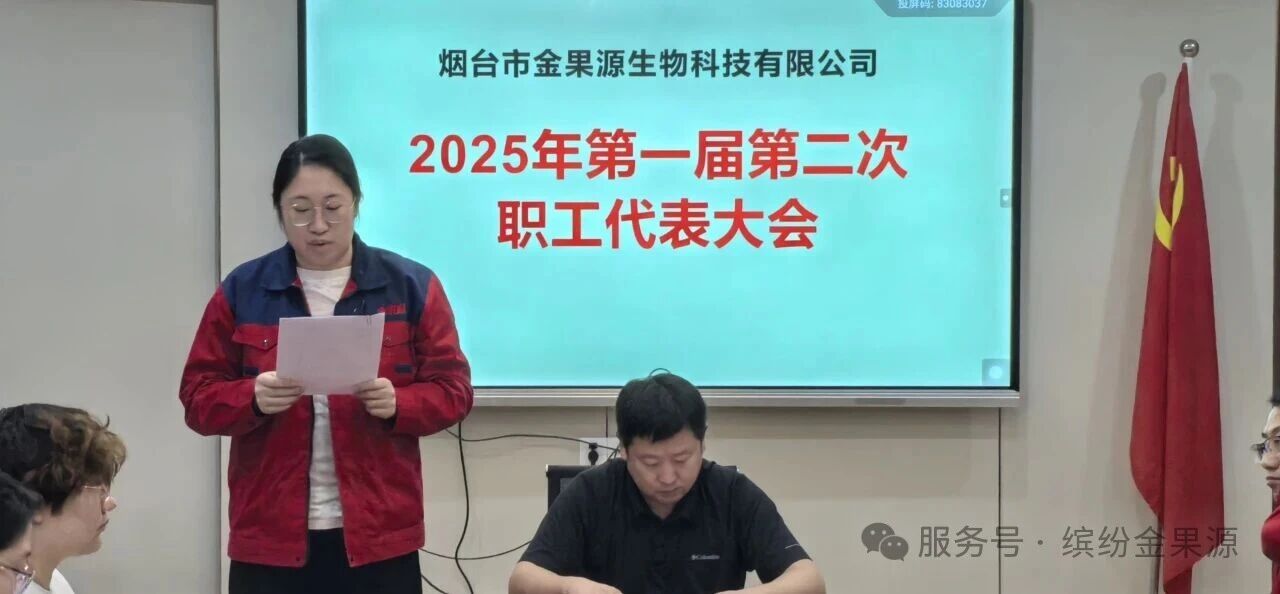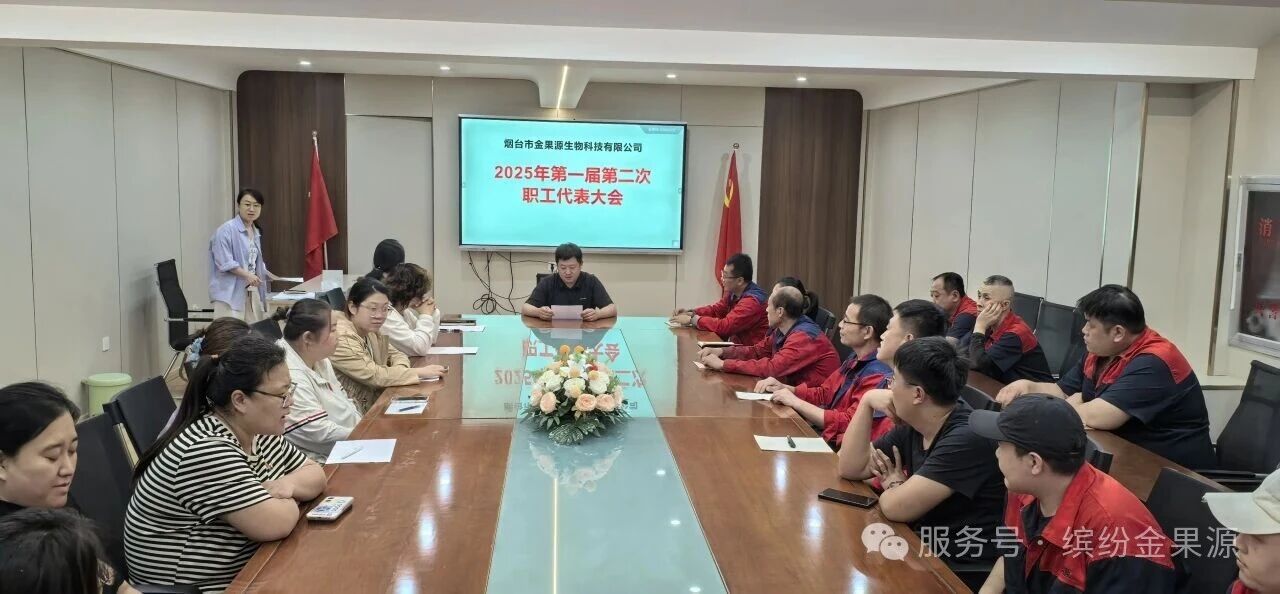 為持續(xù)推進企業(yè)民主管理,充分發(fā)揮職工代表參與公司決策、監(jiān)督和維護職工合法權益的重要作用,2025年10月8日下午18:30,煙臺市金果源生物科技有限公司在公司二樓會議室隆重召開了2025年第一屆第二次職工代表大會。公司工會主席團成員、工會委員會成員及全體職工代表齊聚一堂,共商企業(yè)發(fā)展大計。